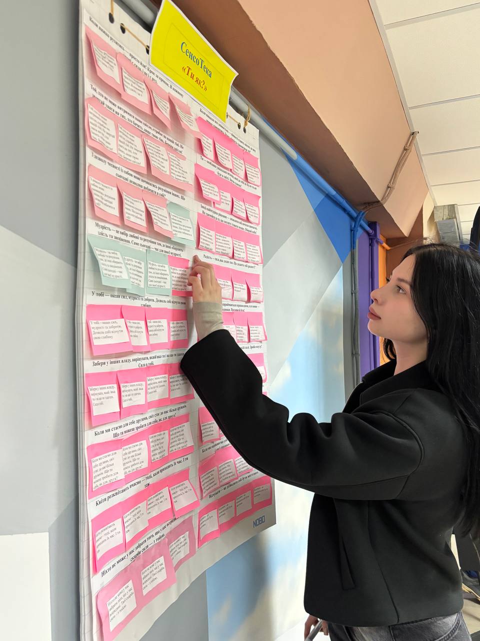 «Стіна сенсів», стала ще однією важливою точкою зустрічі з внутрішнім світом. Тут кожен міг поділитися словами, які допомагають триматися в складні моменти. Сенси, залишені на стікерах, стали джерелом натхнення для інших. (Організатор — Ірина Чуйко)