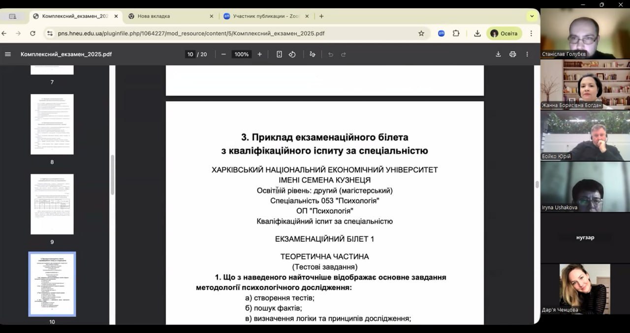 Під час зустрічі здобувачам другого (магістерського) рівня спеціальності «Психологія» було представлено та детально роз’яснено зміни, внесені до ОК 11 «Кваліфікаційний іспит за спеціальністю».