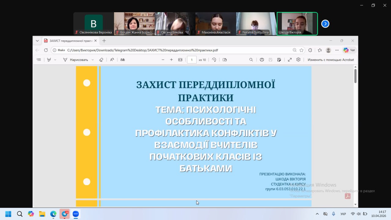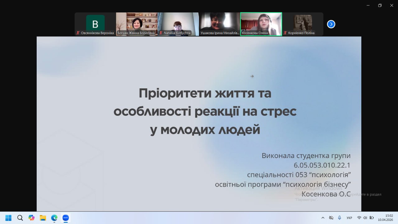 Захист звітів з переддипломної практики спеціальності «Психологія»